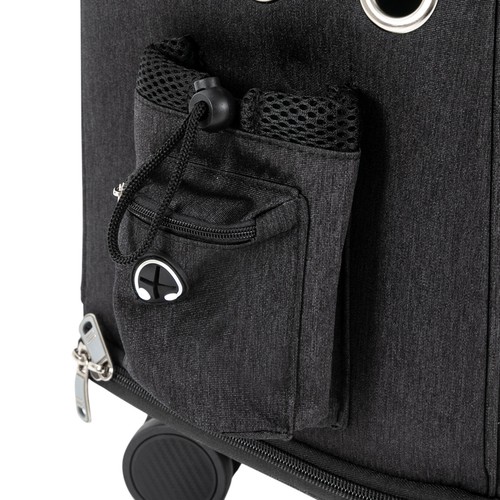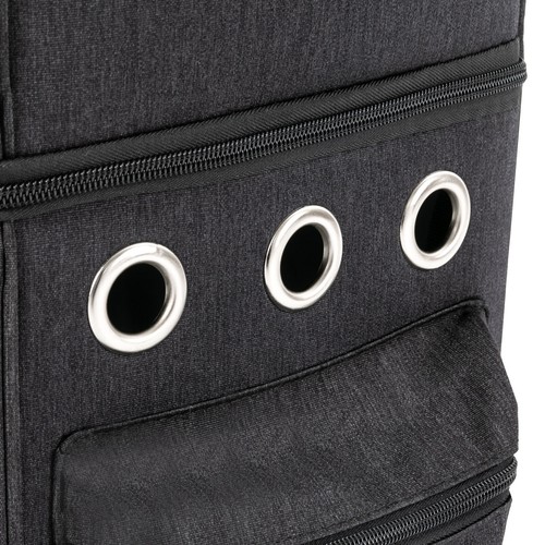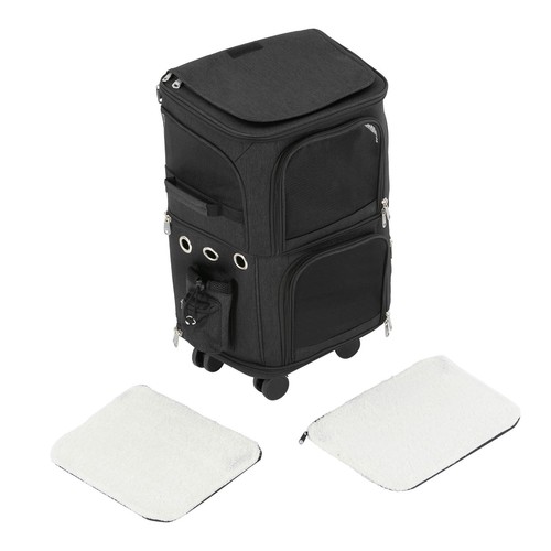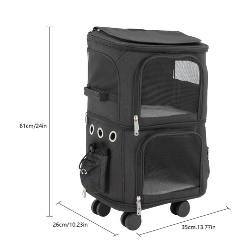 Convenient Travelling: A retractable trolley bar (telescopic height: about 18.11 in) with four removable universal wheels make the whole product easily moved from one place to another without bumps, greatly enhancing efficiency and convenience and letting your beloved pet explore the world together as if it were a small piece of luggage in your carry-on.