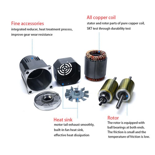- 15W Gear Motor: 70mm*70mm*134mm, Axis Length 30mm