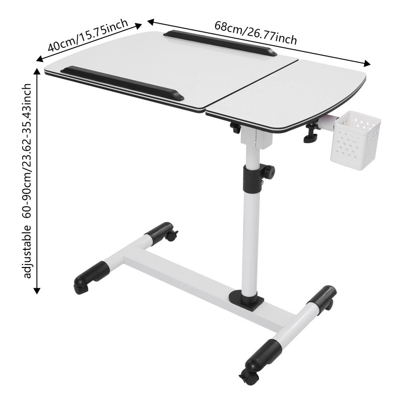 TBvechi Hospital Over Bed Tray Laptop Food Rolling Medical Table Adjustable Desk Tilting