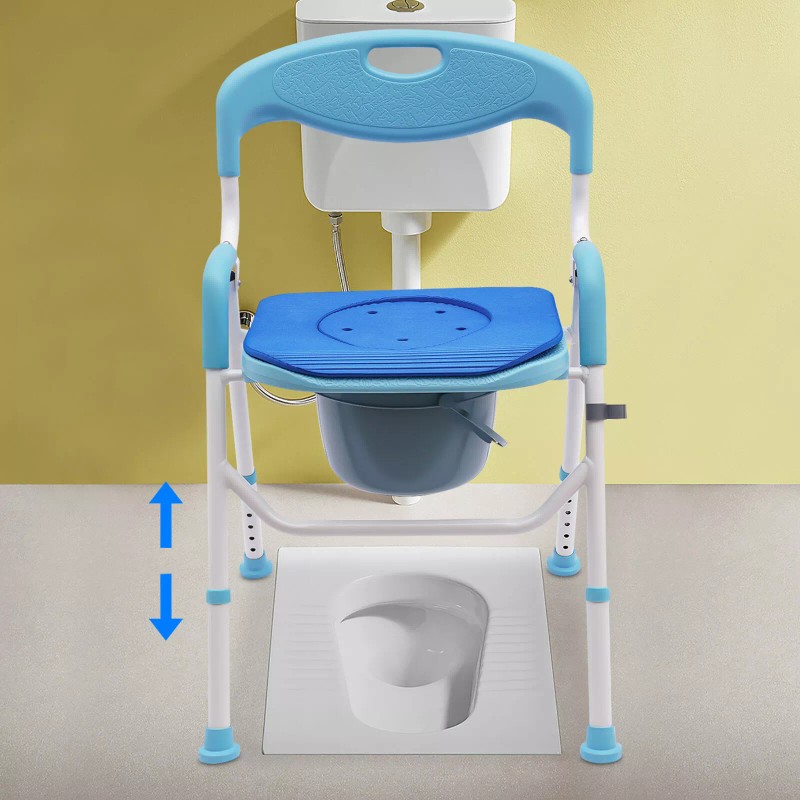 Multifunctional Design: It can used as a bath chair, a bedside commode chair, a chair in daily life, and a toilet booster that transforms a squatting toilet into a sitting toilet, achieving multi-purpose use of one object and increasing its economic benefits.