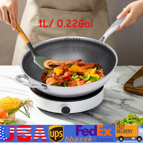 Specification Color: Silver Material: Stainless Steel Surface Treatment: Honeycomb Coating Applicable Stoves: Universal Dishwasher Safe: Yes Capacity: 1l/ 0.22gal Pot Inner Diameter: 30cm/12in Pot Height: 8.8cm/3.46in Handle Length: 23cm/9.06in Package Size: 31*50*13cm/ 12.2*19.69*5.12in Net Weight: 2.8kg/ 6.17lbs Gross Weight: 3kg/ 6.61lbs Package Included 1* Stainless Steel Wok Pan 1* Lid