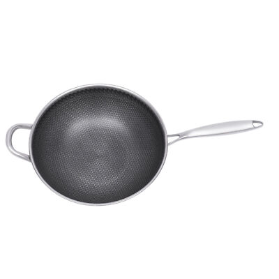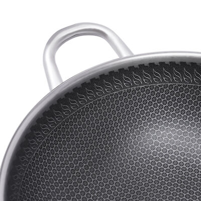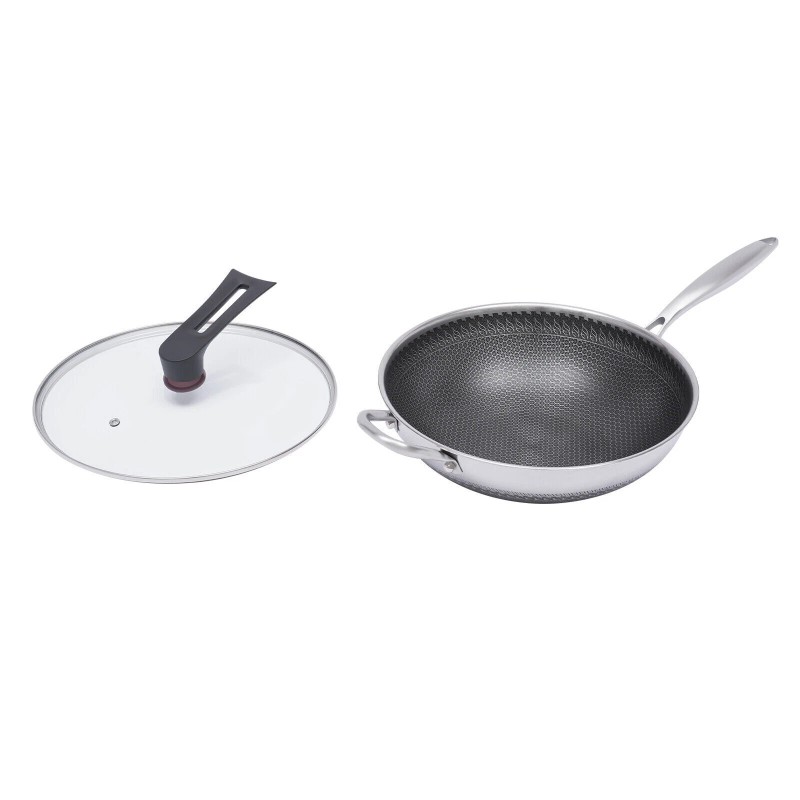 Non Stick Double Sided Honeycomb Cooking Frying Wok Pan With Lid Stainless Steel