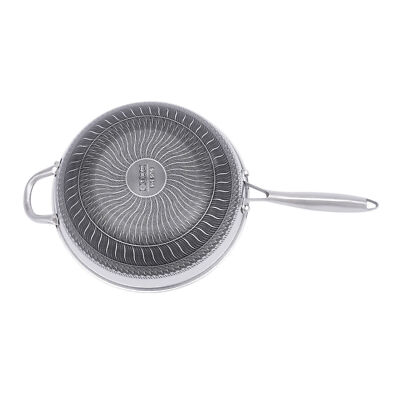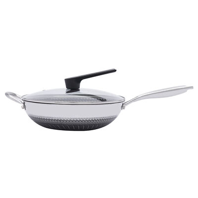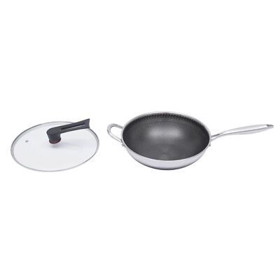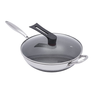 Non Stick Double Sided Honeycomb Cooking Frying Wok Pan with Lid Stainless Steel