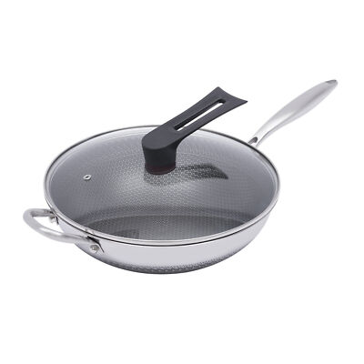 TBvechi Non Stick Double Sided Honeycomb Cooking Frying Wok Pan With Lid Stainless Steel