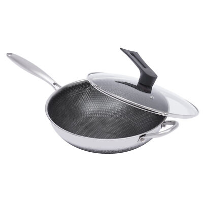 TBvechi Non Stick Double Sided Honeycomb Cooking Frying Wok Pan With Lid Stai...