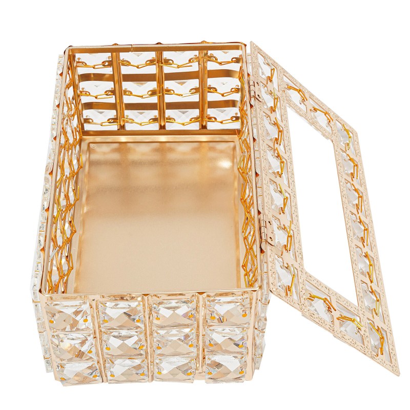 TBvechi Tabletop Crystal Tissue Box Gold Paper Box Home Crystal Napkin Holder Round Pad