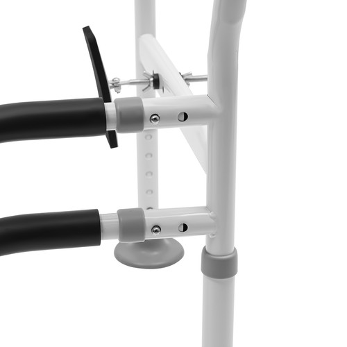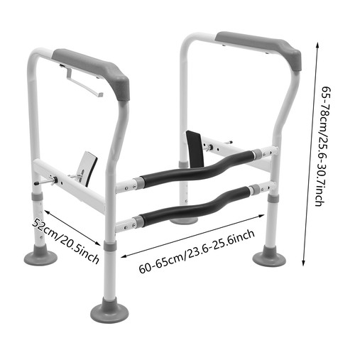 High Flexibility: You can adjust the length of this toilet safety rails between 23.62-25.6in and the height between 25.6-30.71in through holes on the frame, which can provide safety for people of most heights and shapes.
