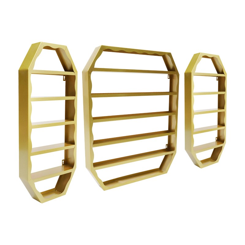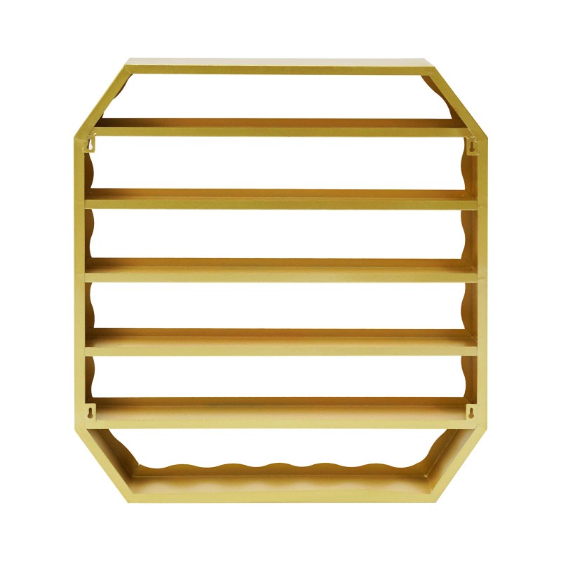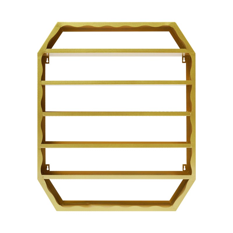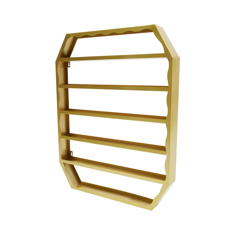 Stylish Appearance: With its chic gold finish and wavy lines, this display rack complements various decor styles, adding a touch of sophistication to any space.