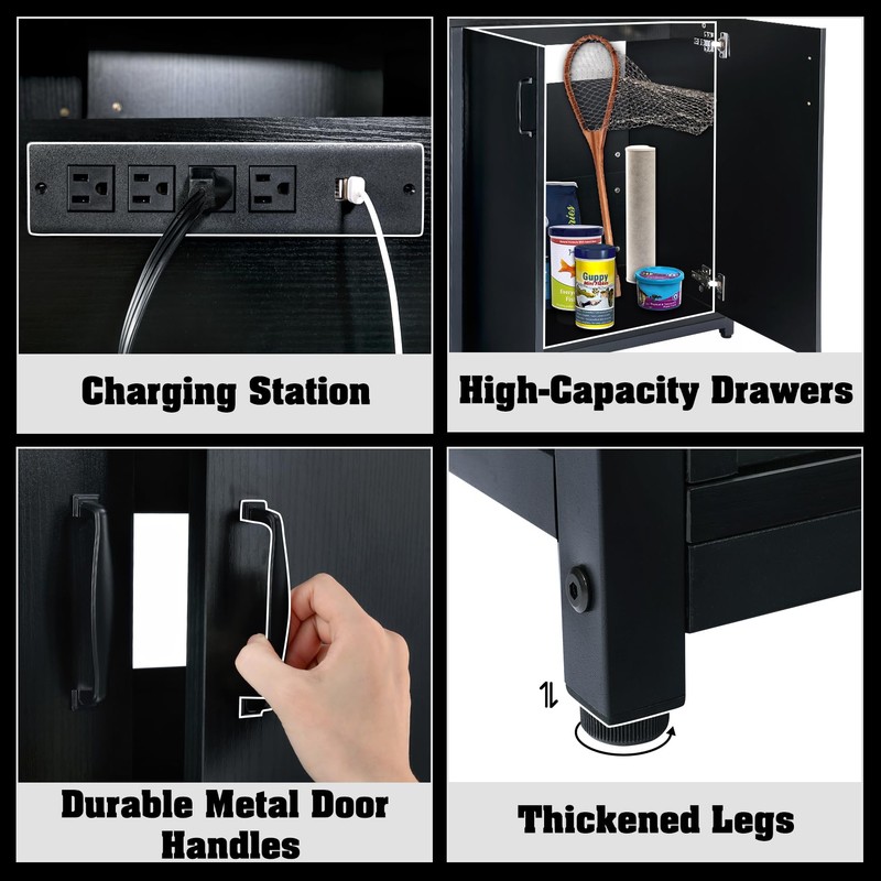- 【Easy Assembly & 2 Year Warranty】 Our products come with detailed installation instructions so that you can easily assemble the fish tank cabinet. We attach great importance to product quality and customer service, we have a professional customer service team ready to help you. If you encounter any problem, just contact us and we will give you a satisfactory solution as soon as possible.