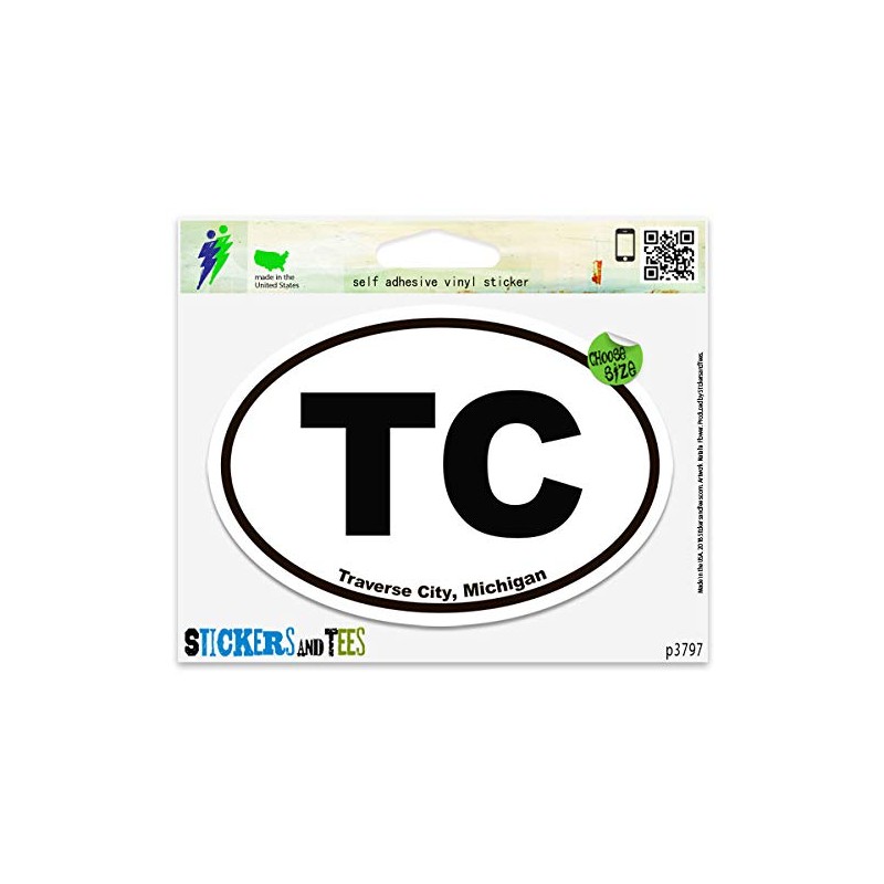 TC Traverse City Michigan Oval Vinyl Car Bumper Window Sticker 3" x 2"