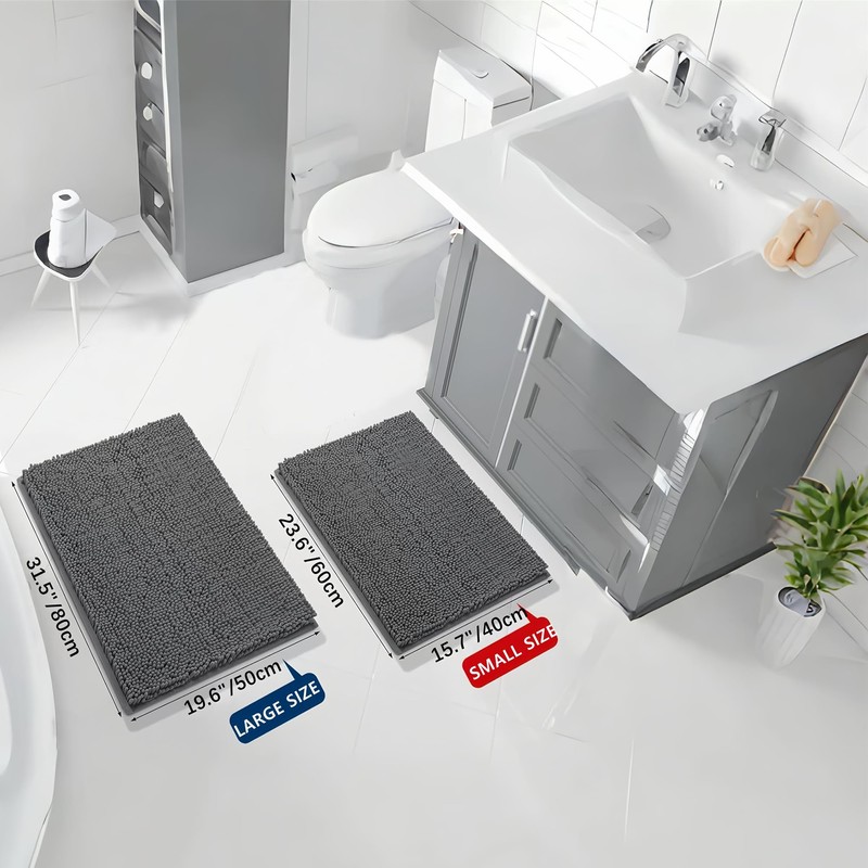 TC0XHD Bathroom Rug, Non-Slip Bath Mat, Washable Bath Mat, Soft Bath Mat, Absorbent Shower Mat for Bathroom (Chenille, 50 x 80 cm)