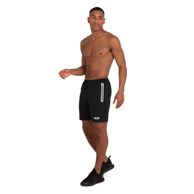 Functional training shorts made from lightweight, durable stretch material for maximum freedom of movement and the two zip pockets provide secure storage for keys, mobile phone or music player. The waistband on the back is elasticated for a snug secure fit so you can focus your undivided attention on sports. Take to new levels in your workout with TCA Elite.