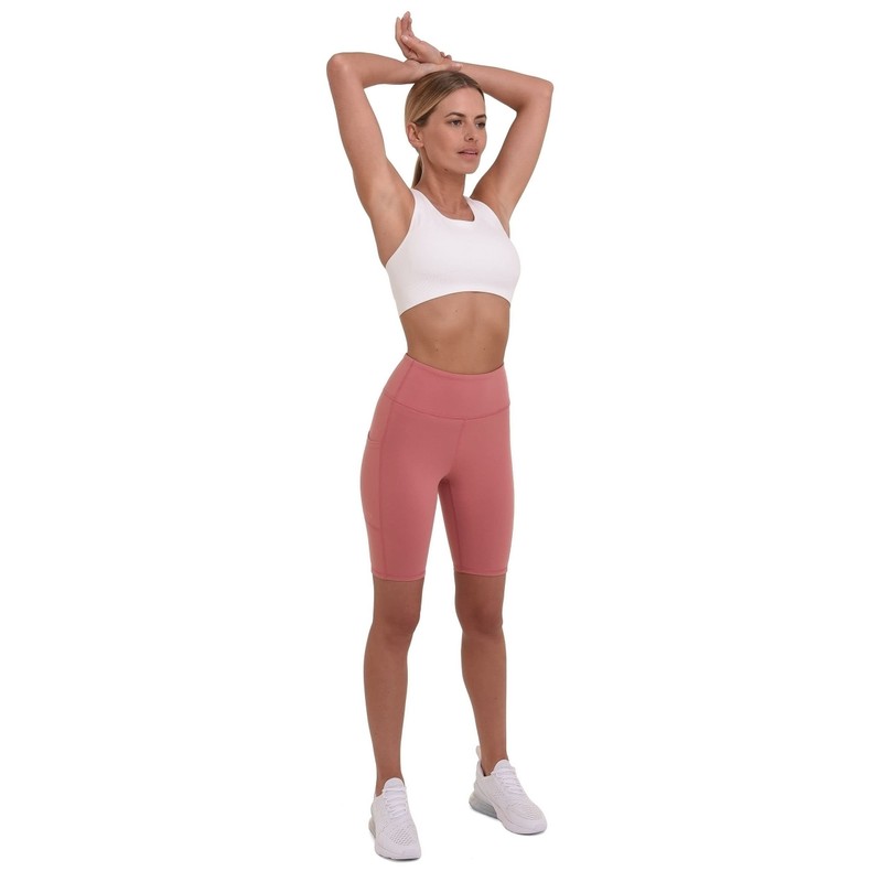 TCA Women's Equilibrium Yoga Workout Athletic Gym Running High Waisted Short with Phone Pocket - Dusty Rose, S