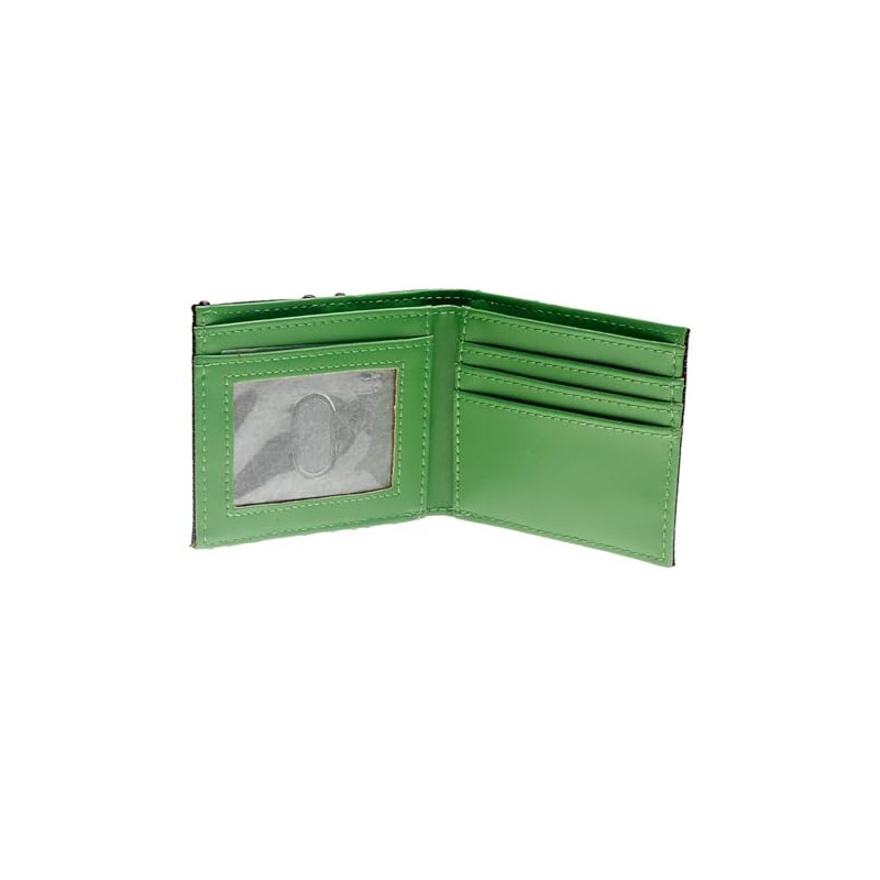 - Inside of wallet features an ID Window, bill fold and multiple slots for cards