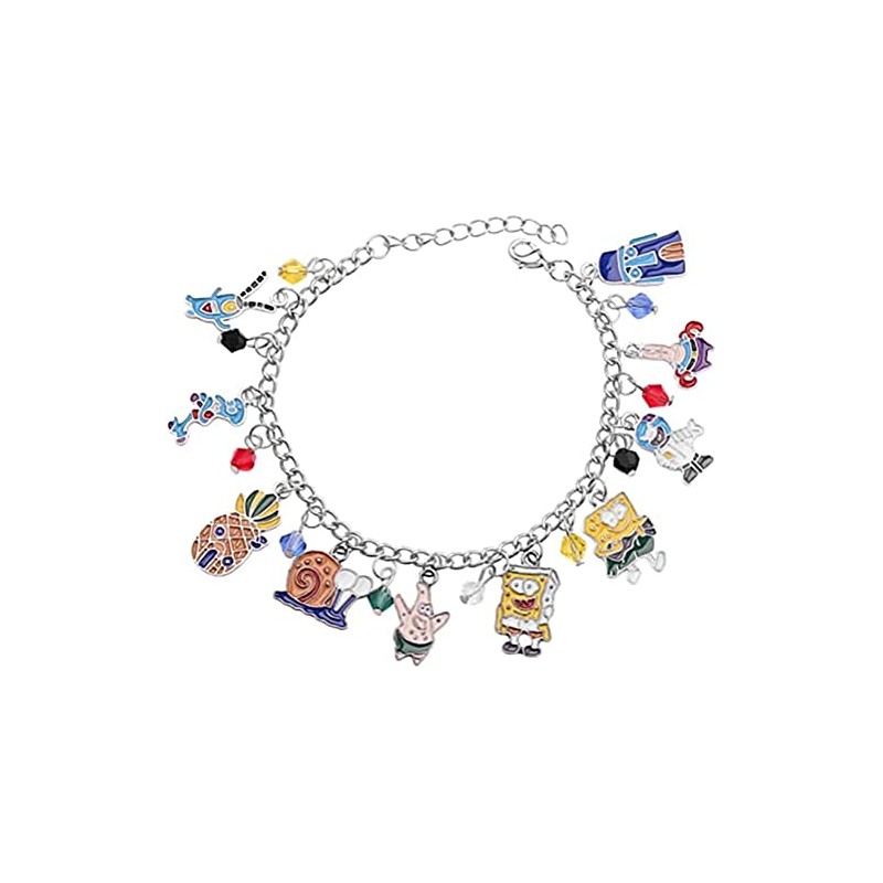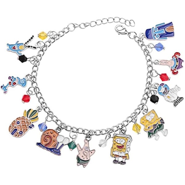 - Sponge Bob Cartoon Square Pants Characters Metal Charms Silvertone Charm Bracelet