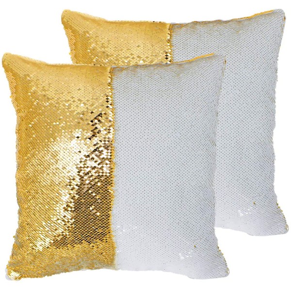 TCBESTO Sublimation Sequin Pillow Blanks 16''x16'' 2PCS Gold Reversible Sequin Pillow Covers Sublimation Pillow Cases for Funny Gifts Decorations