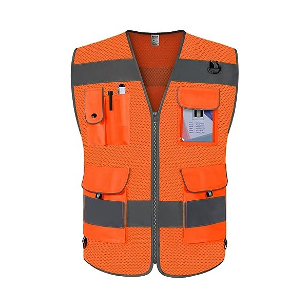 TCCFCCT Mesh High Visibility Vest With 9 Pockets - Hi Vis Reflective Safety for Men Women, Surveyor Work With Reinforced Sewing, Durable, Breathable, Meets ANSI/ISEA (CA-Orange Small)