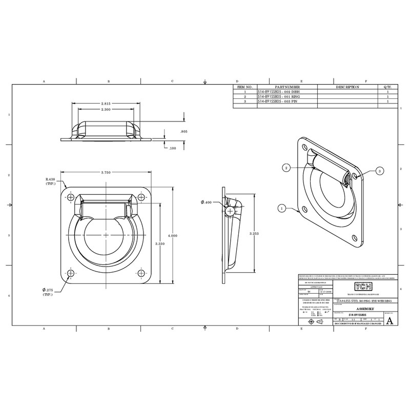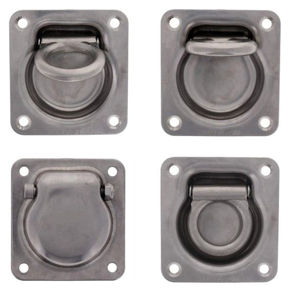 TCH Hardware 4 Pack Stainless Steel Heavy Duty Recessed Tie Down Anchors - 4" x 3.75" x 0.70" - D-Rings 2000lbs Load