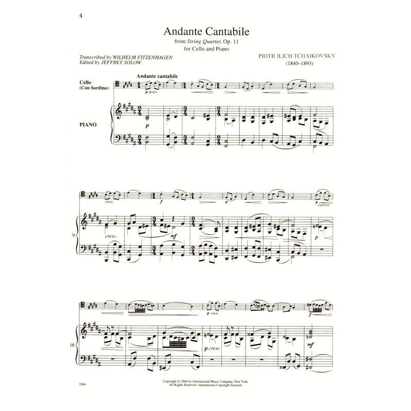Tchaikovsky, Pyotr Ilyich - Andante Cantabile, Op 11 For Cello and Piano Published by International Music Company [Sheet music] [Sheet music] [Sheet music] [Sheet music] [Sheet music] [Sheet music] [Sheet music] [Sheet music] [Sheet music]