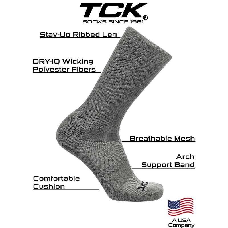 - DRY IQ TECHNOLOGY: Knit from a ultra soft, spun polyester and featuring mesh panels for extra breathability, these TCK Crew Socks will go the distance in keeping your feet comfortable and dry over the course of your day.