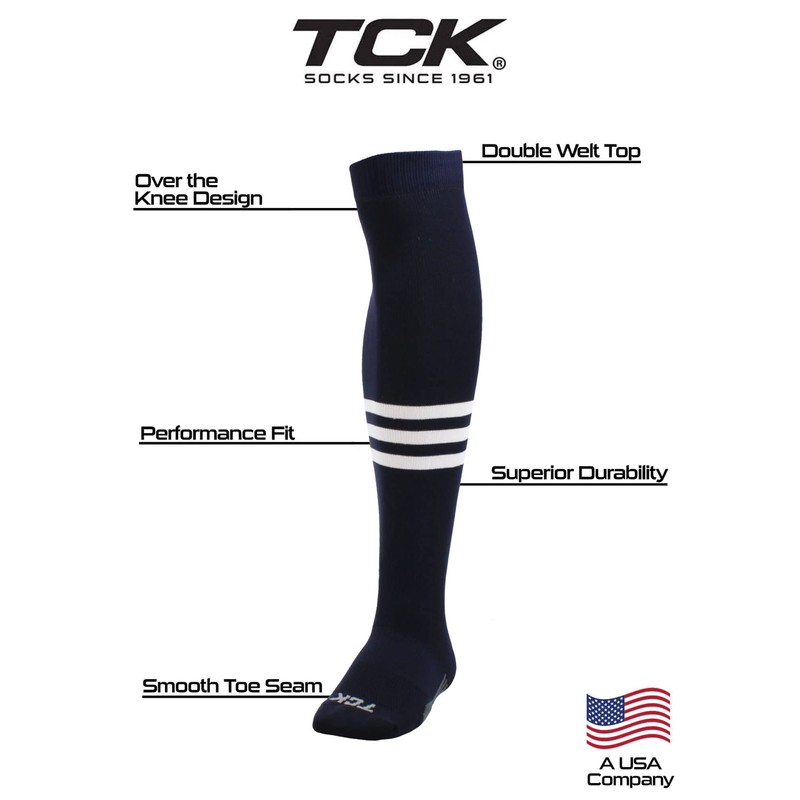 - PERFECT SOFTBALL or BASEBALL SOCKS: TCK has created world class baseball socks with classic stripes in a multitude of team colors. These socks are long, over the knee length which go above the knee.