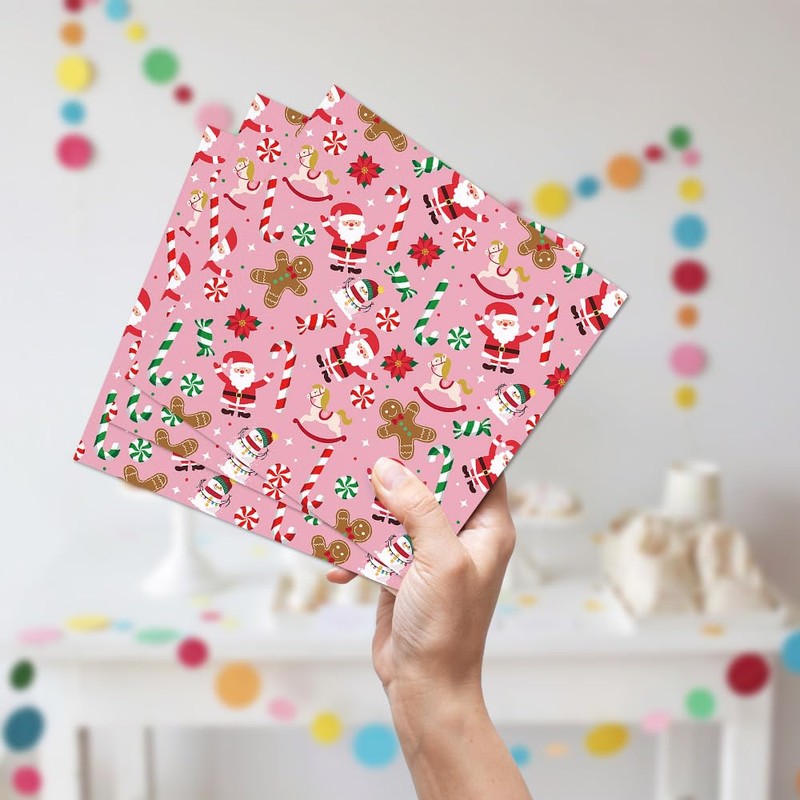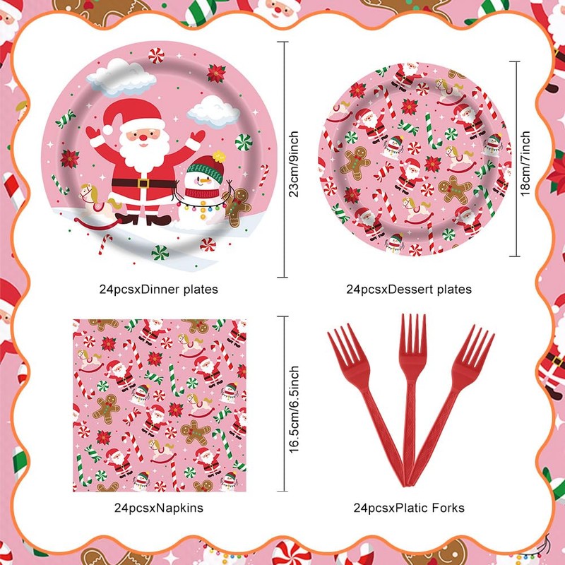 Tcoyodw Christmas Gingerbread Man Santa Claus Pink Tableware Set 96 Pcs Disposable Plates Napkins Forks Candy Cane Snowman Pattern Santa Merry Christmas Party Decorations Serve 24 Guests