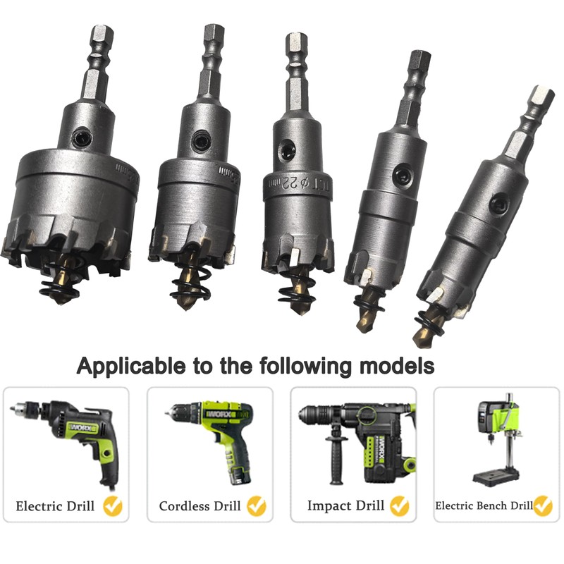 Metal Drill Bits Includes 5 different sizes 16mm(5/8"), 18mm(23/32"), 22mm(7/8"), 25mm(1"), 35mm(1-3/8")