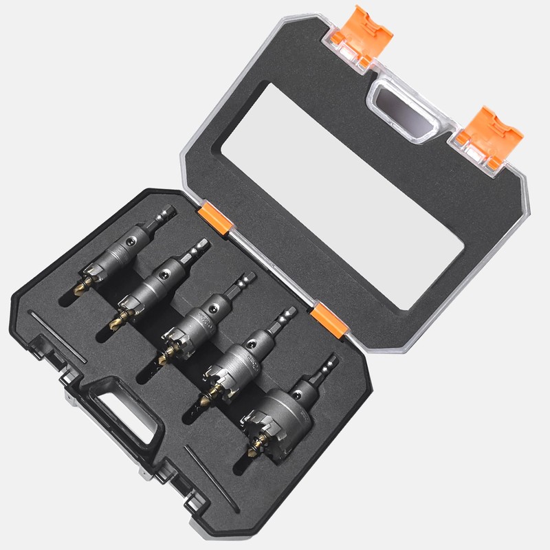 TCT Carbide Hole Saw Kit 5PCS, 5/8" to 1-3/8" Metal Hole Cutter, Hex Shank Carbide Bits Set with Pilot Drill for High Precision Cutting of Iron, Stainless Steel, Aluminum, Alloy, Copper, Plasterboard