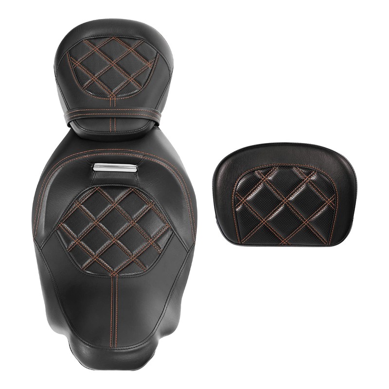 TCT-MOTORPARTS Low-Profile Driver Passenger Seat w/Passenger Sissy Bar Backrest Pad Fit For Harley Tour Pak Touring Road King 2009-2023 Orange Stitching
