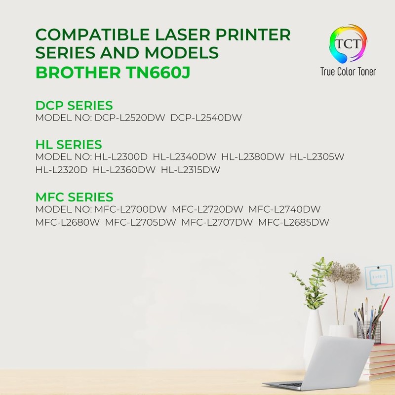 - Package Contents: 2 × TCT Compatible Replacement Jumbo Yield Toner Cartridges for the Brother TN630, TN660