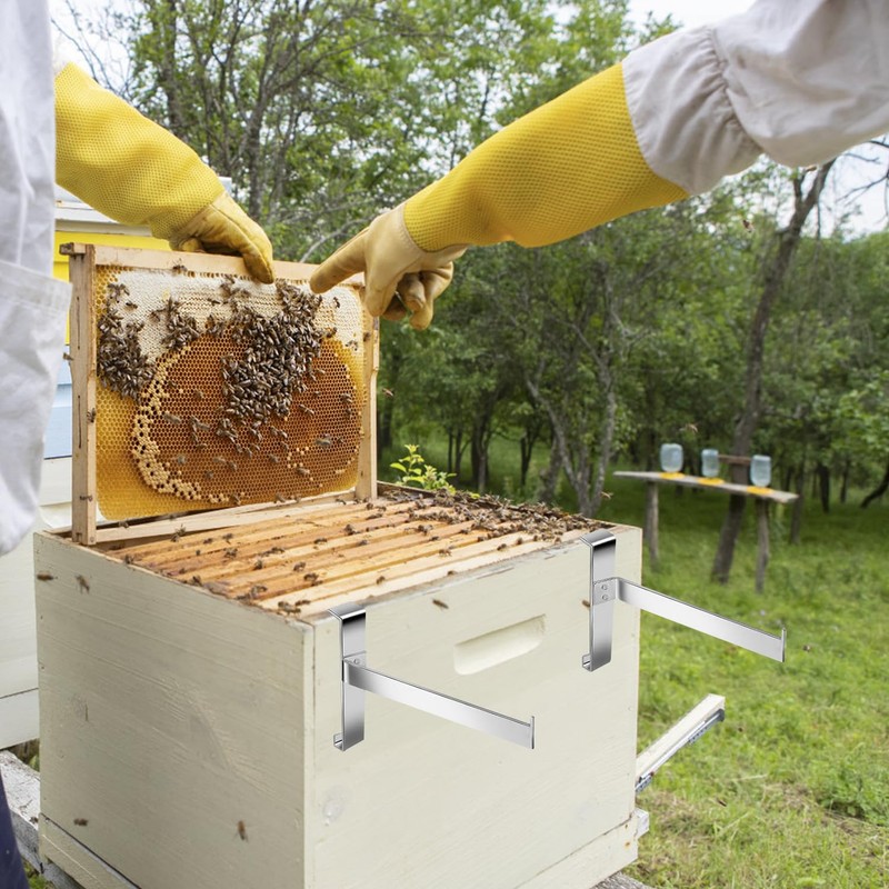- Newly Upgraded Beehive Bracket - Contains 4 beehive brackets, the newly upgraded beehive frames holder has a fall-proof barb design at the end, so that the beehive will not fall when placed on the bracket. Beekeepers check hives more safely.
