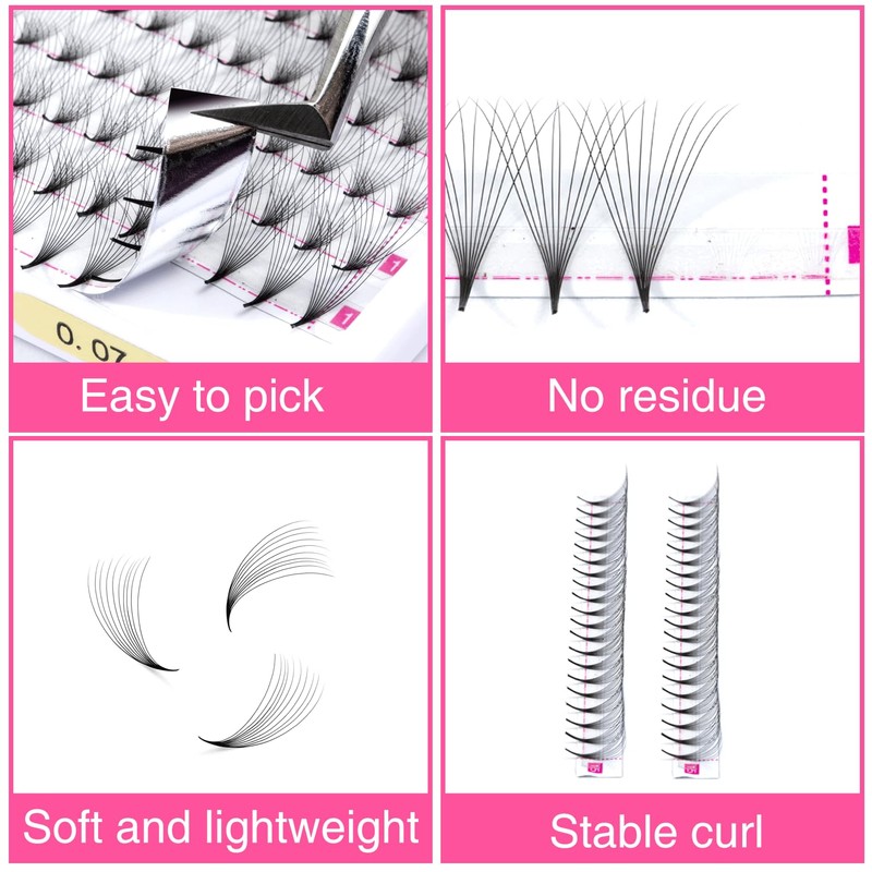 - Do not fall appart: In order to make the roots of the premade lash extensions fans firmer, we use heat bonded, which means that the premade volume fans will not fall apart. At the same time, our premade lash fans are designed to use the pointy base — you can pick it up from the base. Double guarantee, so that you can remove the complete premade fans at any time, without worrying about quality issues.
