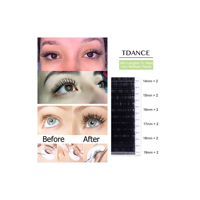 TDANCE TDANCE Premium CC Curl 0.18mm Thickness Semi Permanent Individual Eyelash Extensions Silk Classic Lashes Professional Salon Use Mixed 14-19mm Length In One Tray (CC-0.18,14-19mm)