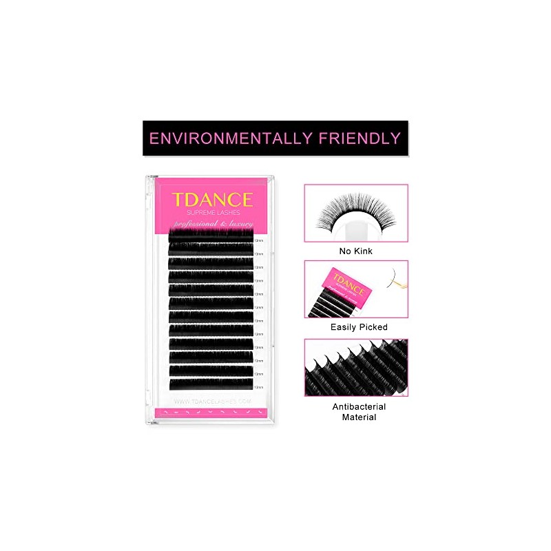 TDANCE TDANCE Premium D Curl 20mm Semi Permanent Individual Eyelash Extensions 0.05mm Thickness False Mink Silk Volume Lashes Extensions Professional Salon Use(D,0.05,20mm)