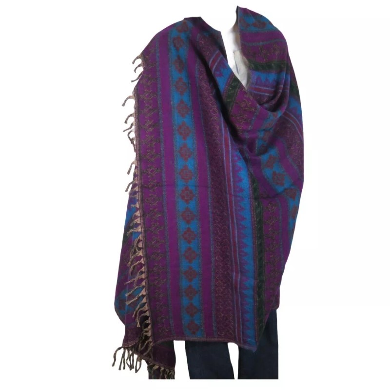 TDbN | Tribal Designs by Neela Throw / Wrap | Yak + Sheep Wool Blend | Nepal | Handmade | Tribal Design |Purple