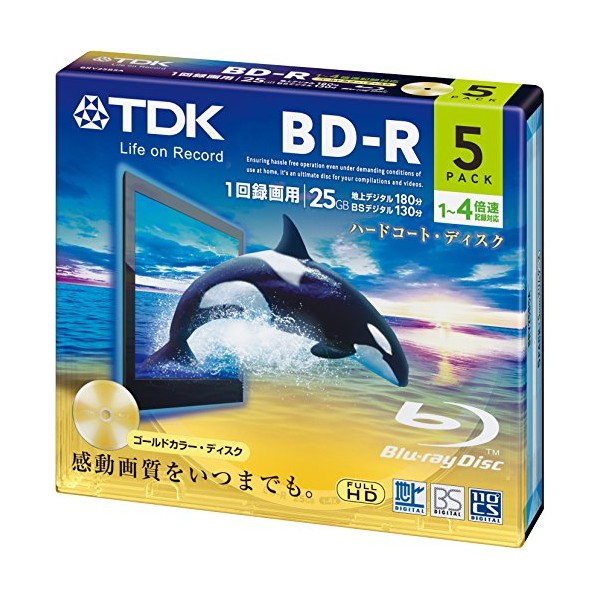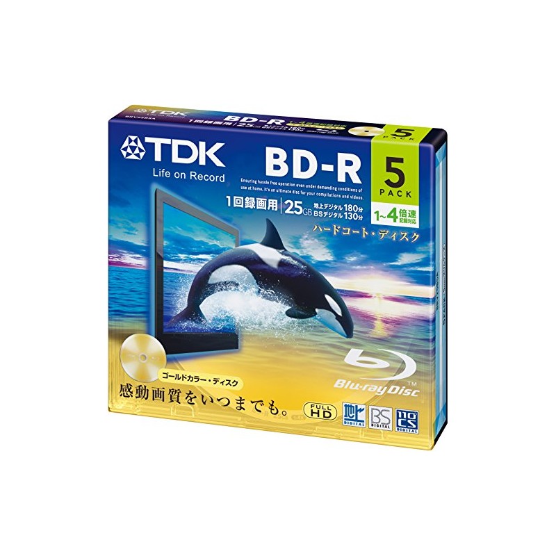 TDK 録画用ブルーレイディスク BD-R 25GB 1-4倍速 ゴールドディスク 5枚パック 5mmスリムケース BRV25B5A