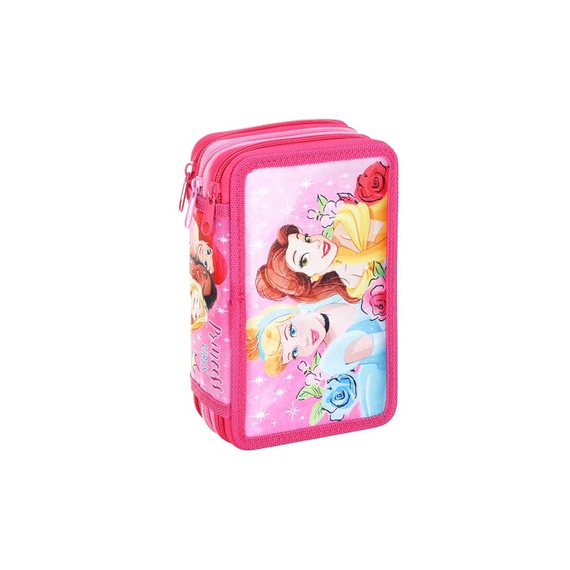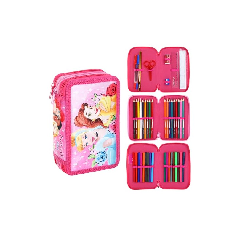 TDL Princess Pencil Case, 3 Zips, Assorted Stationery, 21 x 12 x 5 cm