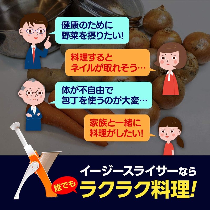 - "I want to eat vegetables every day, but it is hard to prep meal..." "I want to make elaborate dishes at home..." "I want to cook with your kids but worry about having a knife for you... " Easy and easy to cut ingredients. We also have a lot of attention on TV shopping in the US and Korea. Introducing the "Easy Slicer" that spreads your cooking widely