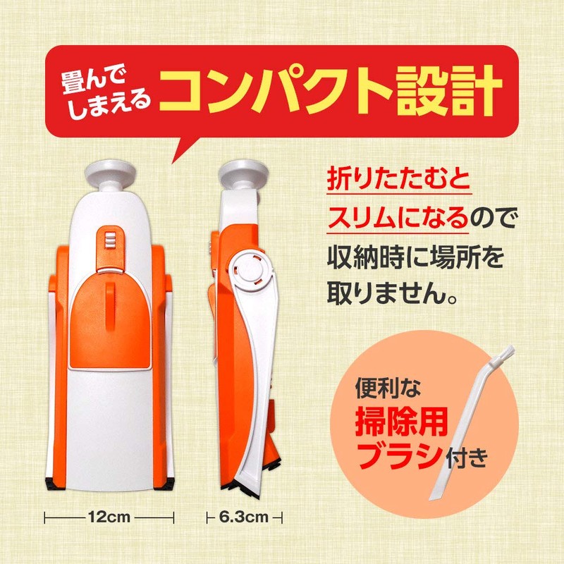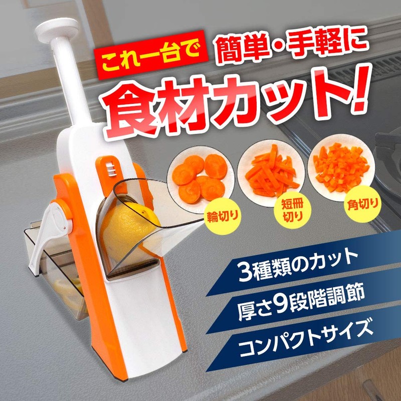 - Comes with a push stand so your hands won't touch the cutter directly so it is safe for children and the elderly. Convenient for those who are hard to cook with rough hands or nails, or those who have difficulty holding their knives. It can be folded compactly after use, so it does not take up much space. We invite you to introduce the easy slicer that will be pleased for the whole family