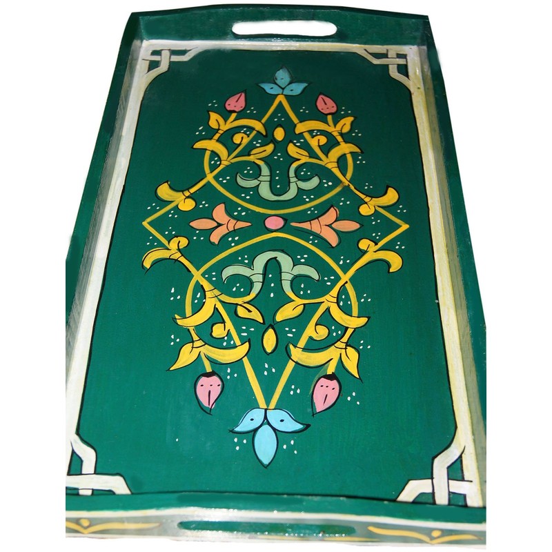 Tea Serving & Glasses Moroccan Wood Tray Hand Made Medium