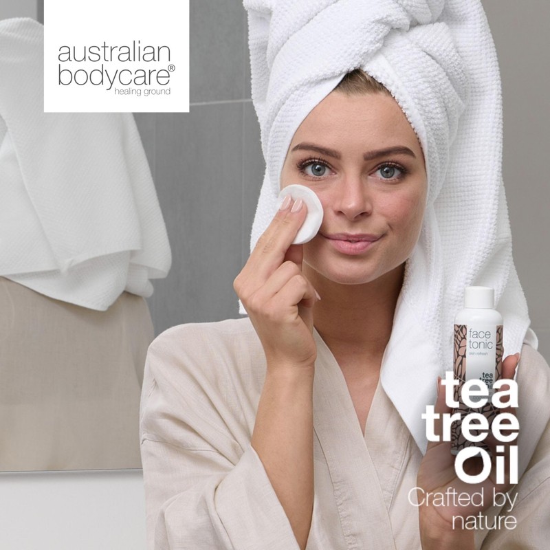 - 🌿 PRODUCT INFO: What's in the product? Our face toner Face Tonic contains 100% natural Australian tea tree oil. The unique composition of natural ingredients moisturises the skin and helps with pimples and other blemishes. All Australian Bodycare products are dermatologically tested and 100% vegan.
