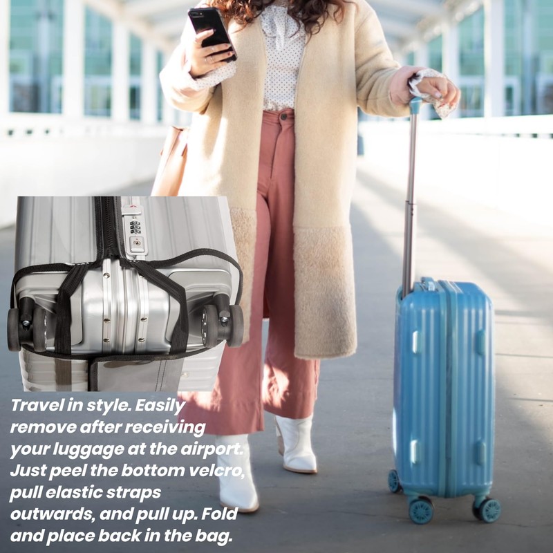 - Protects your luggage from scratch and damages while in transit at the airport, the luggage carousel, and the airplane cargo.