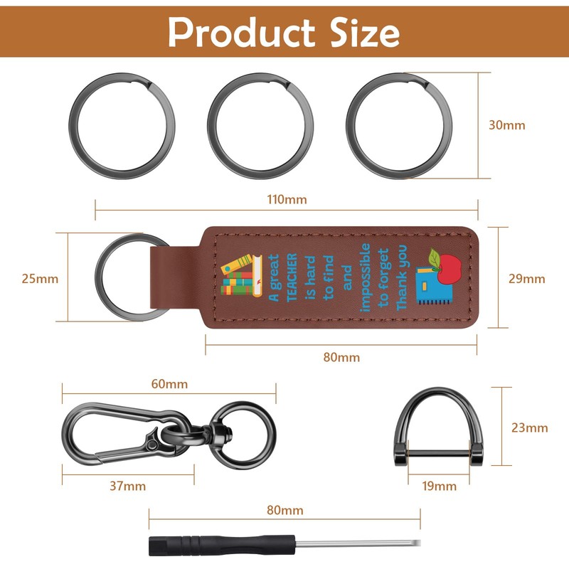 - Teacher Key Chain Material and Size : This leather keychain size is 2.9*8 cm/1.14*3.14 inch. The keychain is made of high quality leather, exquisite leather, comfortable hand feel and easy to wear. Small and practical gift to express your love for teacher.