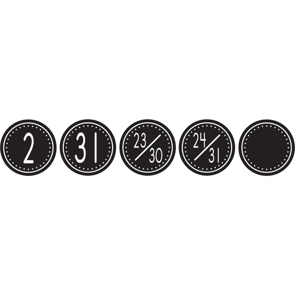 Turn our calendar charts into reusable calendars, month after month! Each pack of matching calendar days come with 31 calendar days, plus a 23/30 Card, a 24/31 Card, and 3 blank cards, 36 cards per pack! Each card measures 2.5" X 2.5".