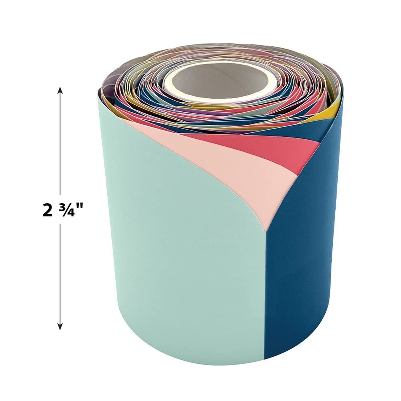 - DIMENSIONS: The roll of border trim measures approx. 2-3/4 inches x 50 feet. This is the perfect size for decorating bulletin boards, walls, doors, and other displays around the classroom. Cut to your desired length!