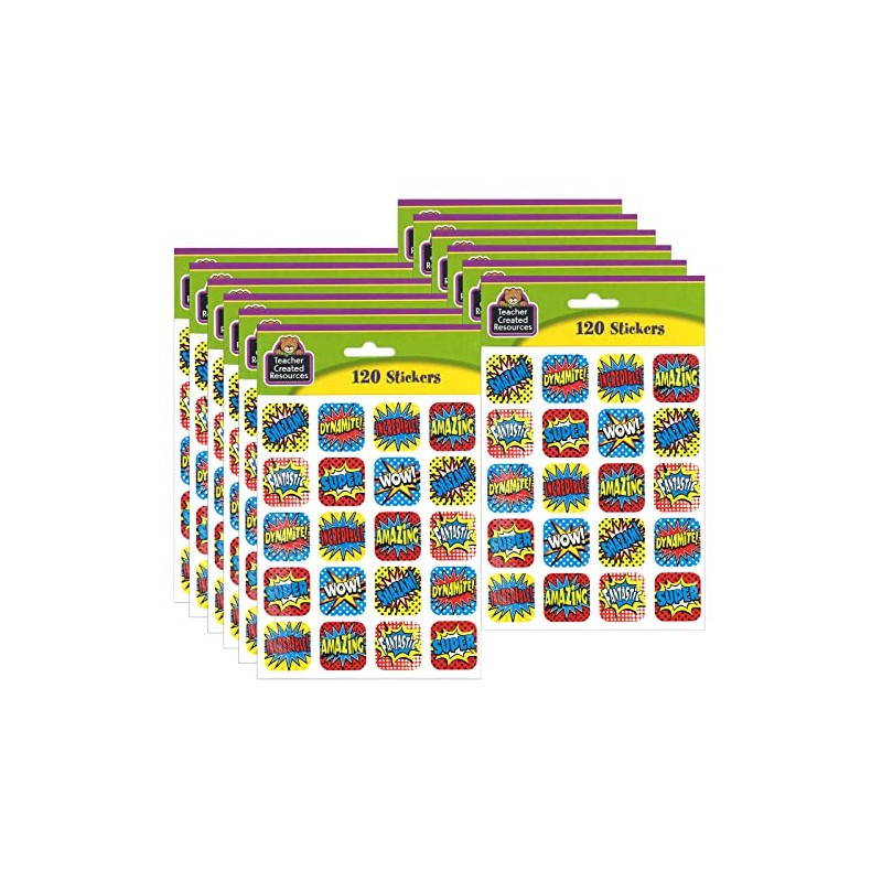 Teacher Created Resources Superhero Stickers, 1", 120 Per Pack, 12 Packs