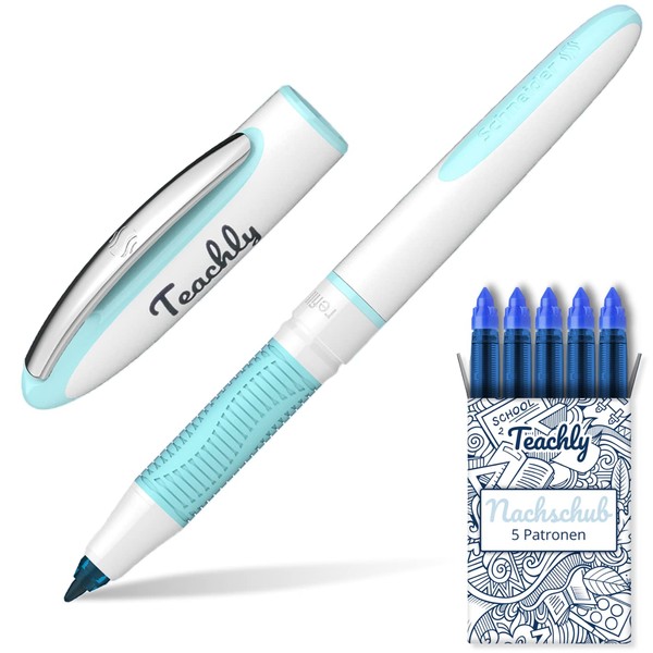 Teachly Teachly Superstudent Tintenroller - Nachfüllbarer Stift für Uni, Schule & Büro (Türkis) - Inkl. 7 Tintenpatronen (Blau)