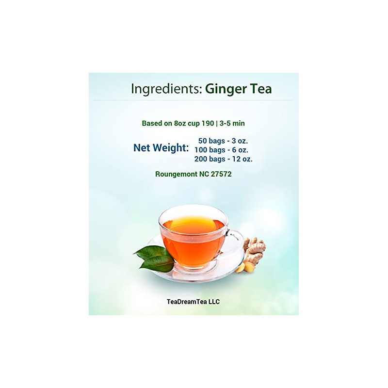 TeadreamTea Ginger Tea Bags - 100 Bleach-Free Tea Bags | Caffeine Free, Antioxidant, Calms Upset Stomach - Strengthen Immune System - Herbal Ginger Tea