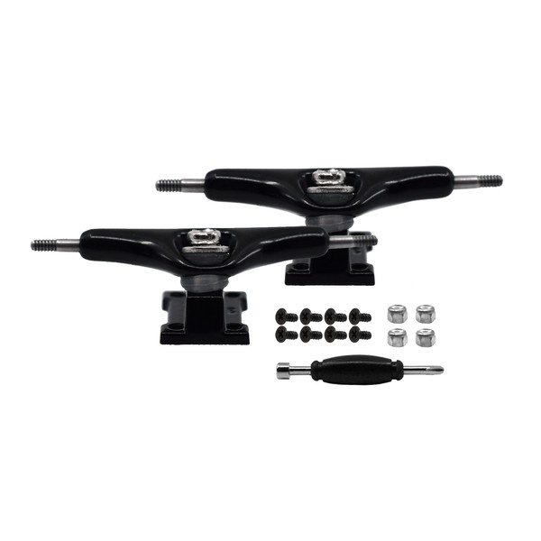 - TUNED & ASSEMBLED || Trucks are both assembled and tuned. All necessary hardware is included - 4 lock nuts with nylon inserts, 8 screws and a standard fingerboard tool. Trucks feature an inverse kingpin design to secure the tuning into place