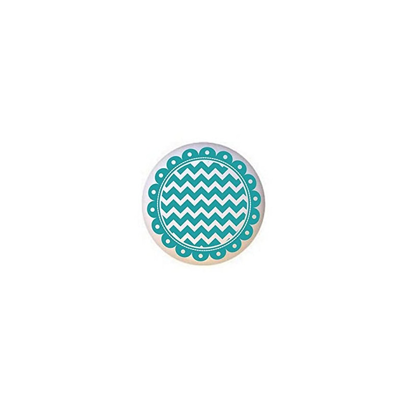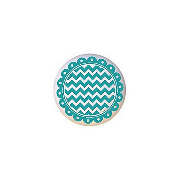 Teal Blue - Scalloped Zig-zagged Circles Stripes - DECORATIVE Glossy CERAMIC Cupboard Cabinet PULLS Dresser Drawer KNOBS
